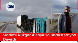 ŞİDDETLİ RÜZGAR ALANYA YOLUNDA KAMYON DEVİRDİ