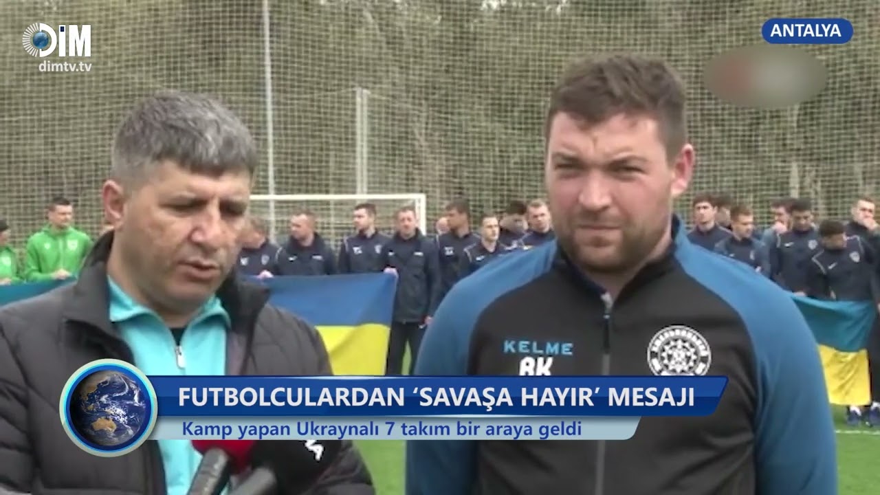 Rusya’nın Ukrayna’ya başlattığı operasyon öncesinde kamp için Antalya’ya gelen ve ülkesine dönemeyen 7 futbol takımının oyuncuları yeşil sahada bir araya gelerek ‘Savaşa hayır’ dedi.